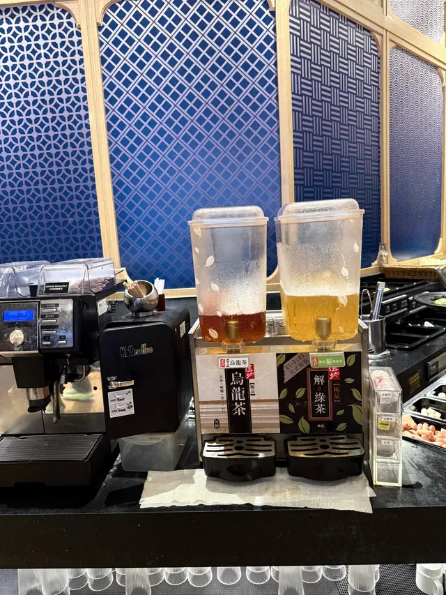 提供多款茶飲和汽水,有兩款地道嘅烏龍茶同解綠茶,能有效中和油膩感。亦都有即磨咖啡機,咖啡香醇順口,仲可以搭配雪糕,作完美的收