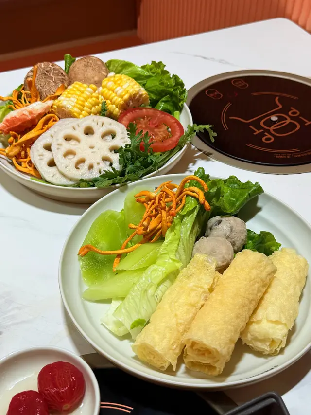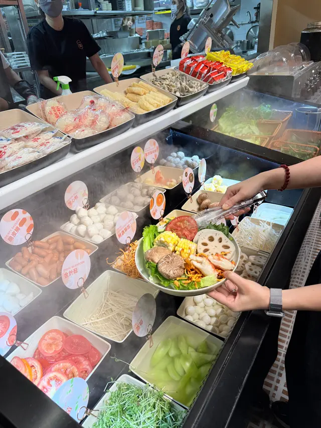 而自助吧有唔同款式既飲品,有自助調醬區、麵類、丸類、響鈴、蔬菜類,蔬菜方面多款又新鮮。