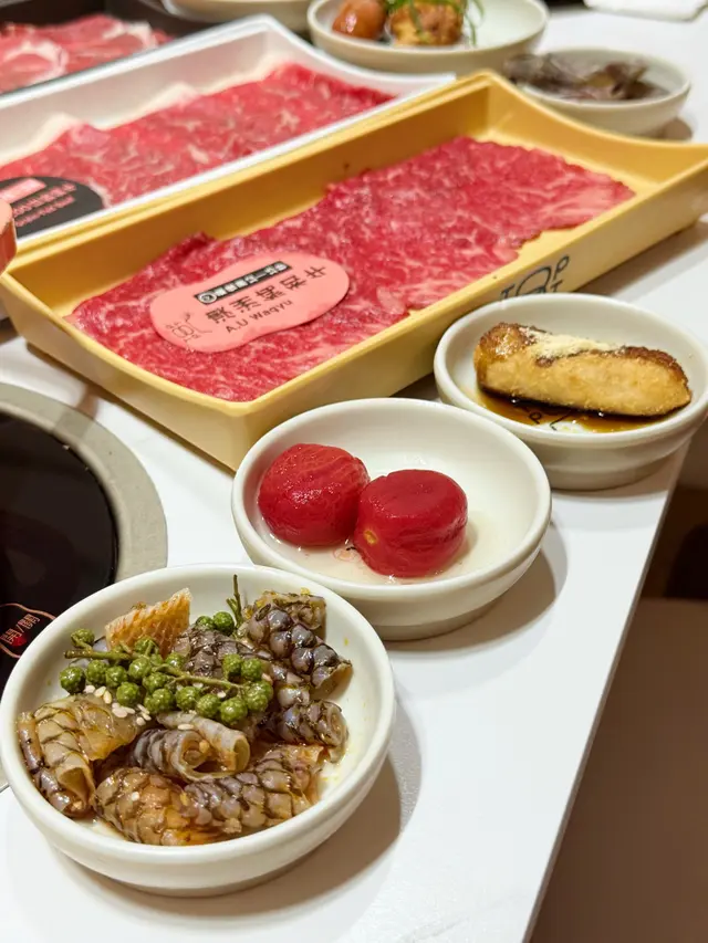 海鮮都有多款選擇,生蠔肥美飽滿,海蝦鮮甜彈牙,大蜆冇沙甜味。除左火鍋食材仲有前菜同台式小食,前菜我就鍾意冰釀梅汁蕃茄夠酸好開胃,青麻椒辣魚皮好爽辣,小食有一鼎鹽酥雞、手作地瓜球、台灣腸等等