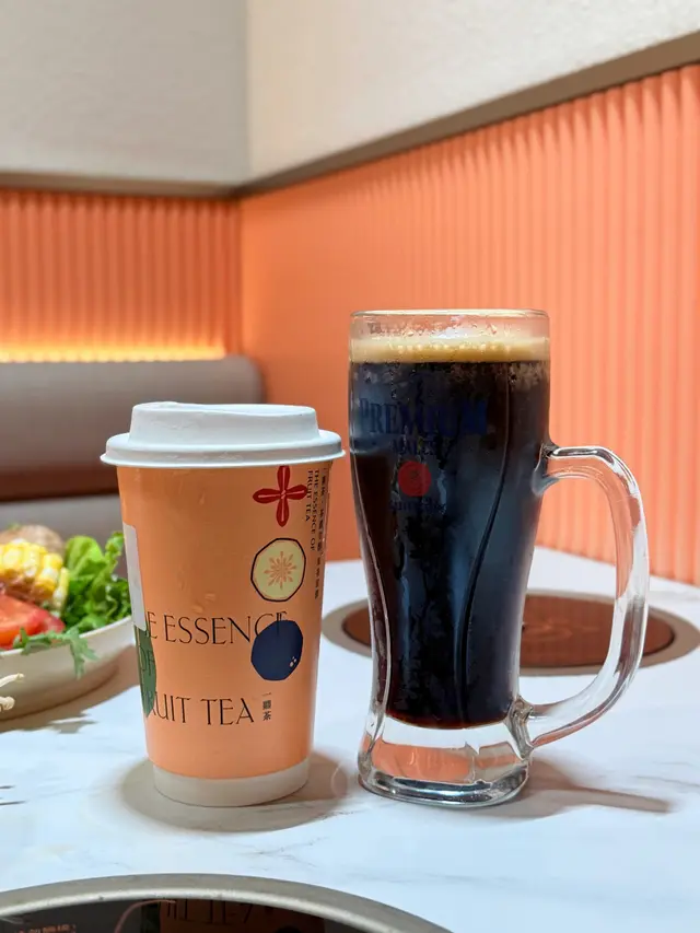 最正嘅係可以一人一鍋,而且有8款湯底,我就揀左冬蔭公湯底,朋友就揀左QQ骨膠原,仲可以任叫任飲台式茶飲同任飲生啤🤭生啤岩哂我。