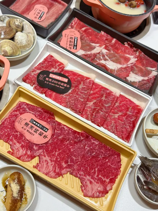 澳洲200日穀飼牛係澳洲用上優質穀物飼養200日,肉質嫩滑,牛味濃郁,油花分布均勻,入口即化。澳洲純和牛,一樣咁好食,同樣油花靚,牛味濃,我地仲叫左特級牛舌,味道爽滑,餐廳非常貼心有張咭子寫上最佳涮肉時間添。