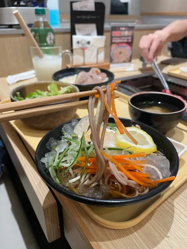 主食係日式冷麵蕎麥麵,清爽解膩;飲品係日式雲抹綠茶,配搭和牛食真係一絕!