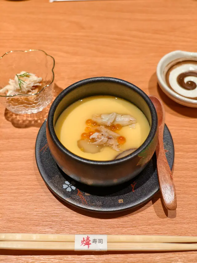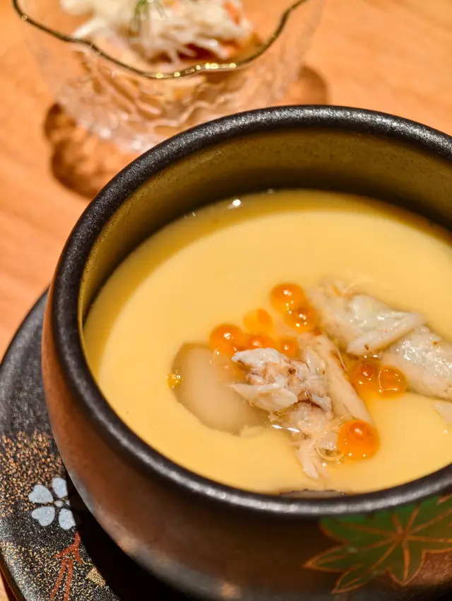 是蟹肉豆腐和蟹肉茶碗蒸,蟹味突出,茶碗蒸特別嫩滑,還有帆立貝,蝦仁和三文魚子提鮮。
