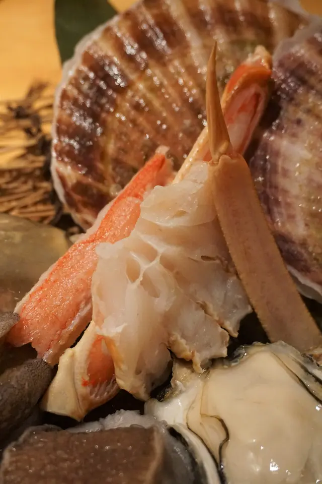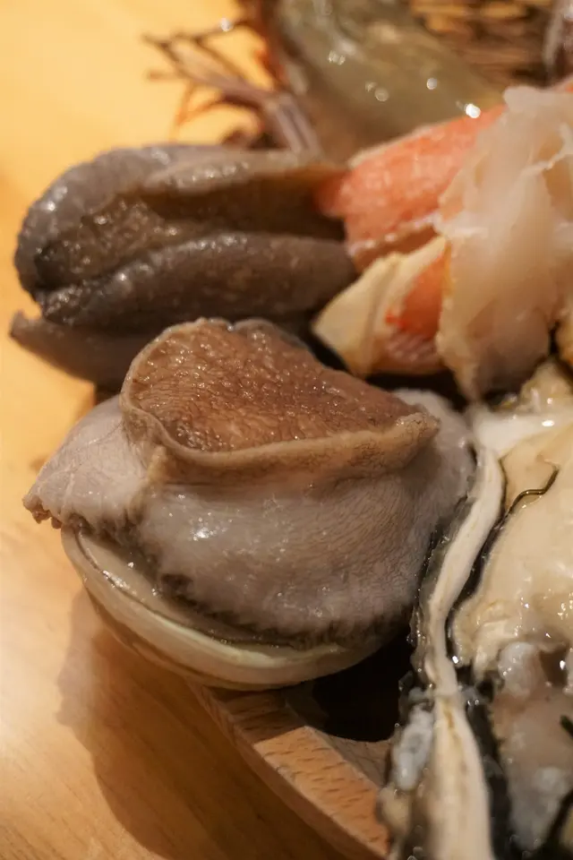 包括有珍寶蝦、松葉蟹腳、鮑魚、蠔、活帆立貝 (二人份量)