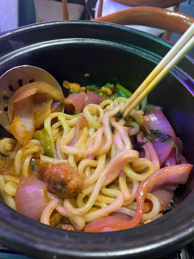 食完雞煲,店員推薦我哋唔好浪費個雞煲汁,建議我哋加個烏冬再煮!!好正真係!!第一次咁樣食!烏冬有口感,彈牙!!撈雞煲汁,真世一!!