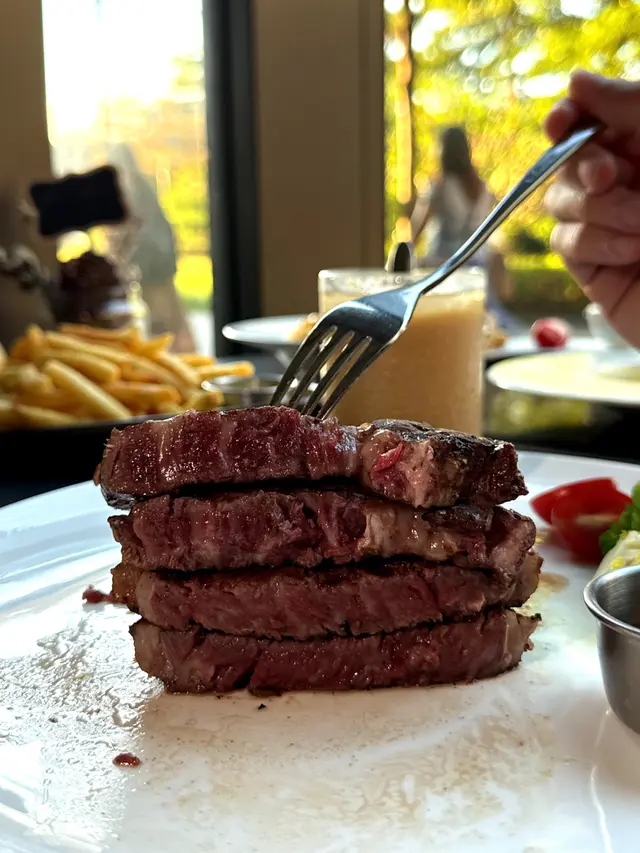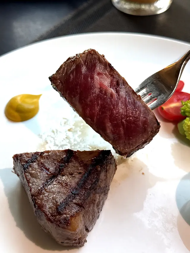 肉眼選了5成熟,肉質依舊鮮嫩,入口帶有和牛獨有的甜美肉香。咀嚼時,肉汁夾雜細膩脂香緩緩釋放,令人回味。不過,5成熟的油脂香氣略為內斂,未完全綻放,若再熟一兩分,或許能更突顯其濃郁的脂香魅力。