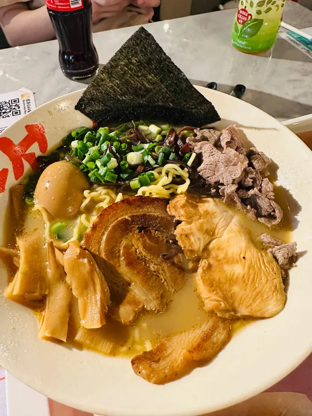 「三色」分別係豚肉,雞肉同埋牛肉。豚肉軟嫩,雞肉異常嫩滑,完全唔嚡口,而牛肉更加香口入味。同樣係配醬油湯底,因為配料豐富,令到每一啖湯嘅味道都有微妙變化,口感同味道都非常豐富。