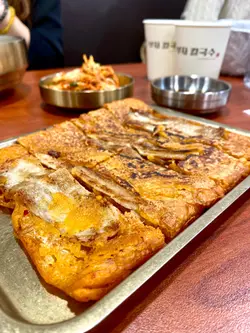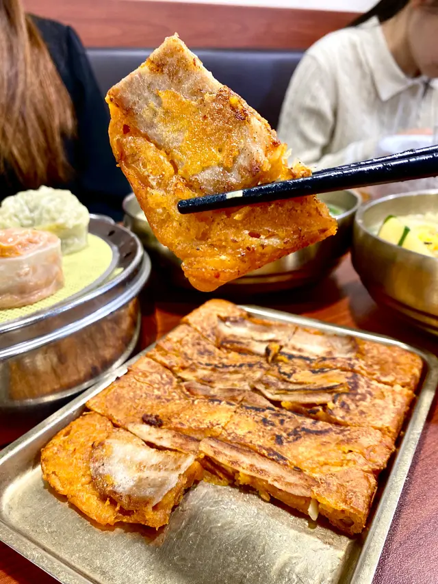 小吃也有驚喜。五花肉泡菜煎餅厚薄適中,表面脆,裡面軟糯,咀嚼有層次。雙拼蒸餃子個頭很大,豬肉與泡菜各兩顆,餡料紮實,調味清,鮮味突出。整體價錢合理,份量實在。想吃一餐暖身、不花巧的韓式麵與點心,這裡可靠。
