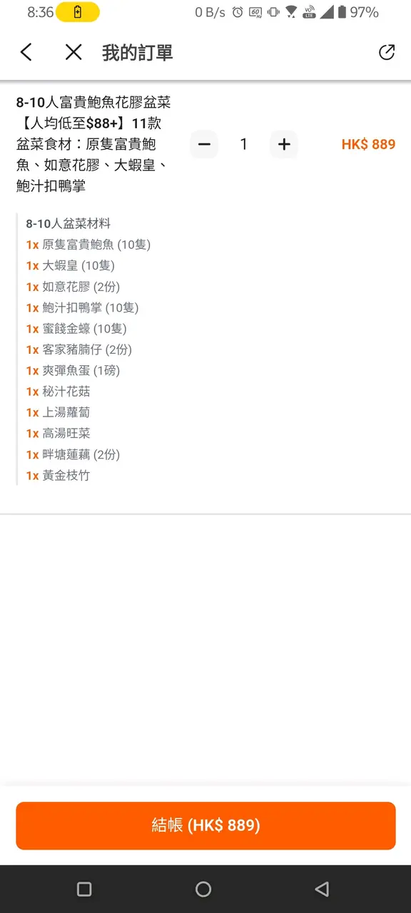 11款盆菜食材真係唔講得笑,8-10人盆菜材料包括: