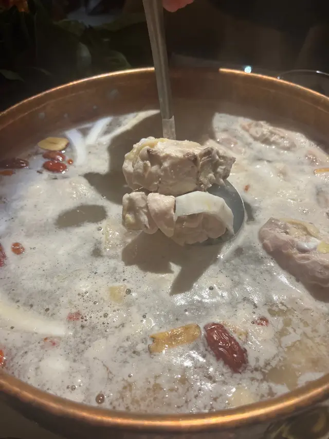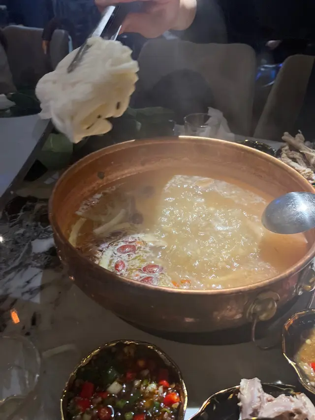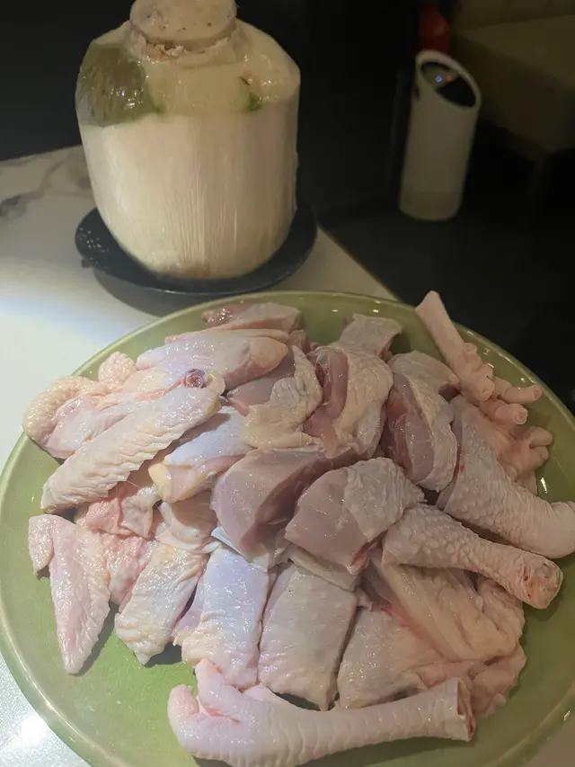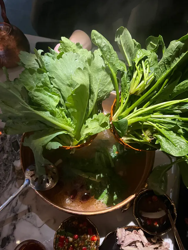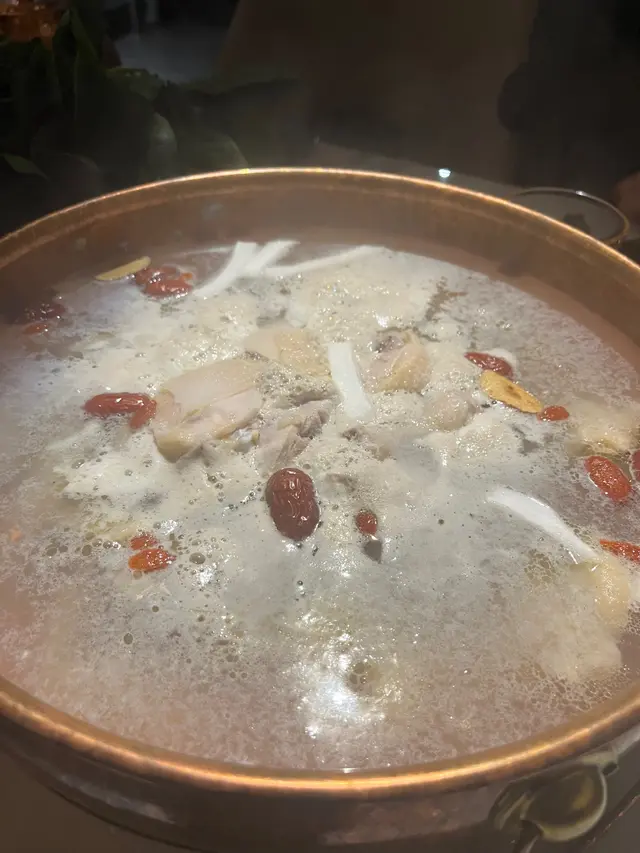真係成隻文昌雞,一黎到店員好貼心,幫我哋落左雞同椰子水🥥椰子水真係原個落,夠哂真材實料🤩之後幫我哋較大火煮8分鐘,先飲湯同食雞,再慢慢打邊爐☺️湯底飲落超清甜,有陣陣椰子香,雞肉嫩滑,肉味香,再點上佢哋特製嘅沙薑醬😍超惹味😌