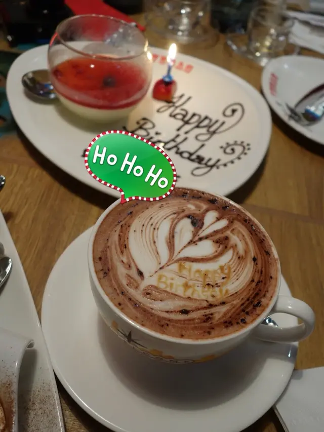 最後服務生為壽星女送上熱朱古力,超大杯而且味道不錯,而草莓醬奶凍也相當不錯,竟比waffle 還要好。