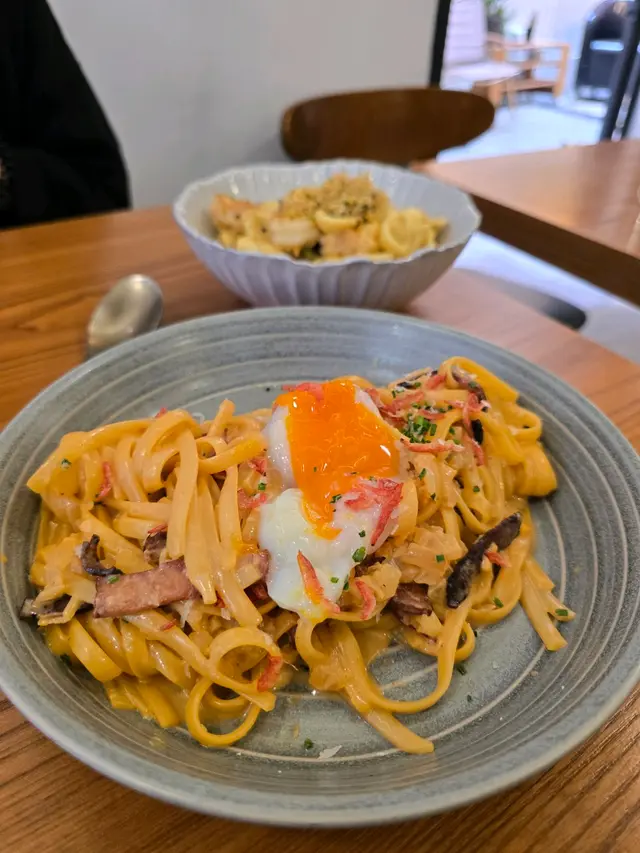 上環情侶開設的Cafe×小酒館小店 carmenwong1993等級42025-03-08583 浏览 关注 鹹蛋黃忌廉醬蝦球貓耳朵粉 ($148) - 啖啖的鹹蛋黃香氣但食落又唔覺膩,蝦球爽口彈牙,貓耳朵粉容易掛上醬汁,撈埋鹹蛋黃紫菜肉鬆更美味。 煙肉溫泉蛋櫻花蝦海膽醬扁意粉 ($148) - 加入了海膽醬及櫻花蝦的意粉食落甘香可口,撈埋溫泉蛋令口感更滑溜,煎香過的煙肉增添了鹹香味,非常惹味。 蜂蜜伯爵茶豆腐Tiramisu ($42) - 這款是改良版的tiramisu,加入了豆腐,淡淡的豆香之餘又帶有清爽感,伯爵茶味非常香濃,喜歡伯爵茶的人必試。 焦糖香蕉拖肥waffle ($58) - waffle焗得外脆內軟,香蕉上有層脆脆焦糖,配上香滑奶香味濃的忌廉簡直絕配。以上食记乃用户个人意见 , 并不代表OpenRice之观点。赞好分享上環情侶開設的Cafe×小酒館小店 Aha CAFE & BISTRO https://s.openrice.com/QrbT0Yx1Q00检举 张贴 评分4味道4环境4服务4卫生5抵食用餐途径堂食