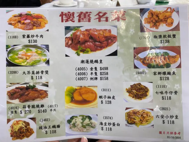 餐廳環境充滿舊式茶樓既風味,主打懷舊名菜,例如雞蛋焗魚腸、霸王鴨、金錢雞、蝦子柚皮、家鄉釀鯪魚等,晚市食客非常多,亦有不少外國旅客光顧。