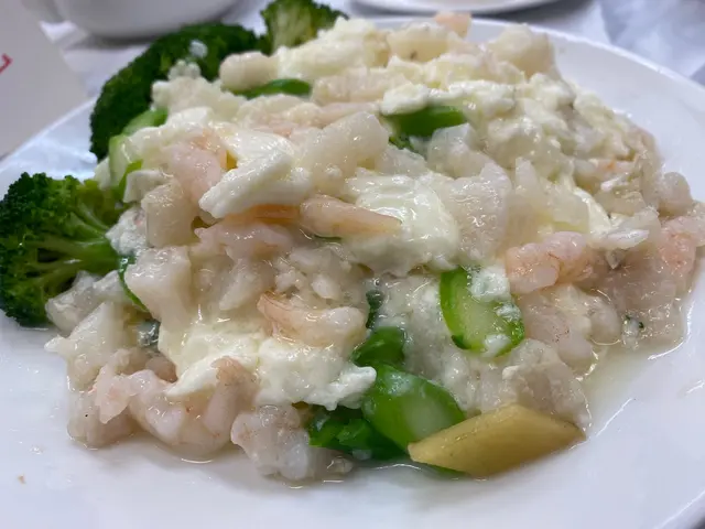 這道菜以炒蛋白配搭多種海鮮,例如蝦肉、魚肉,另外仲有西蘭花、菜心等。蛋白口感嫩滑,蝦肉和魚肉調味剛剛好,清淡得來又鮮味十足。