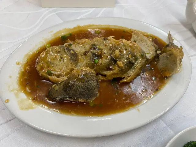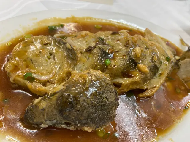 將魚骨和魚肉起出,而留下魚頭魚尾,之後將起出既魚肉剁爛再釀入魚身,外皮煎得香脆,內裏鯪魚彈牙爽口,味道十分特別,菜式十分花功夫。