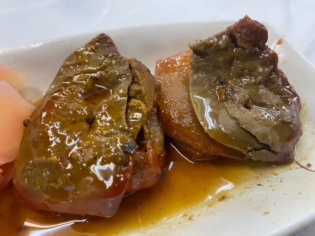 香港傳統美食,可以按件叫起,最少兩件起,以雞肝結合肥瘦豬肉,表面塗抹蜜糖,雞肝甘香純厚,油香濃郁可口,同時有附上薑片解油膩感。