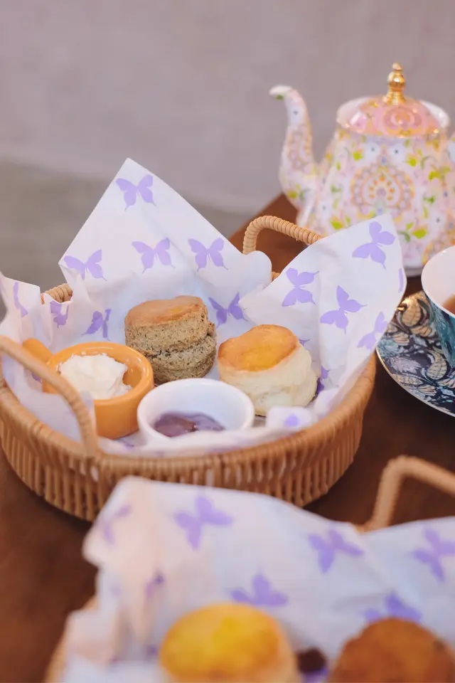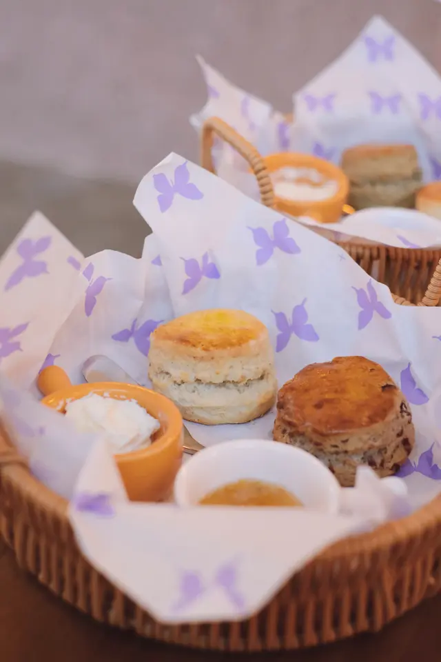 手工英式鬆餅每日新鮮出爐,提供給客人享用前會再翻熱,每個sᴇᴛ可以選兩個sᴄᴏɴᴇs,試了經典牛油原味、法式伯爵茶味、檸香薰衣草味及肉桂紅莓味,果醬也有十多款口味,選擇了蘋果菊花和荔枝蝶豆花果醬!鬆餅外脆內濕潤,它自身的味道也很明顯🤤