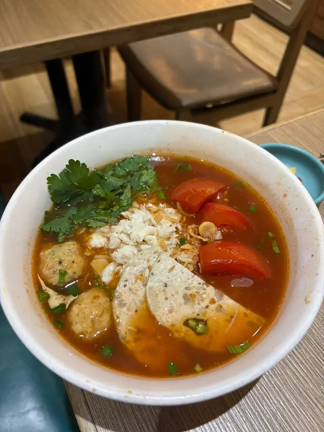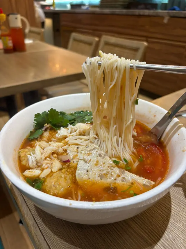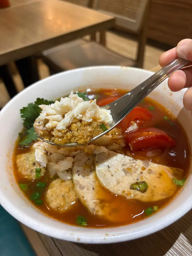 蕃茄蟹檬檬枌,湯底開胃順口,酸酸甜甜嘅蕃茄味同蟹嘅鮮味好夾。檬粉好滑,吸晒湯汁嘅精華,份量都幾多,食完暖笠笠。