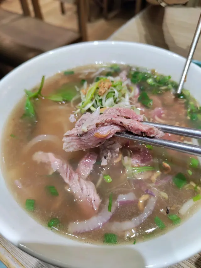 有洋蔥、芽菜、薄荷葉、蔥花等香料,很有層次及口感。