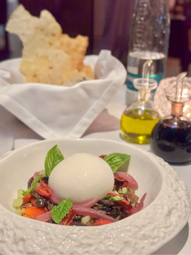 水牛芝士配上牛油果、番茄、油浸蕃茄乾、蔥、黑羅勒醬及香草調味,感覺清新開胃