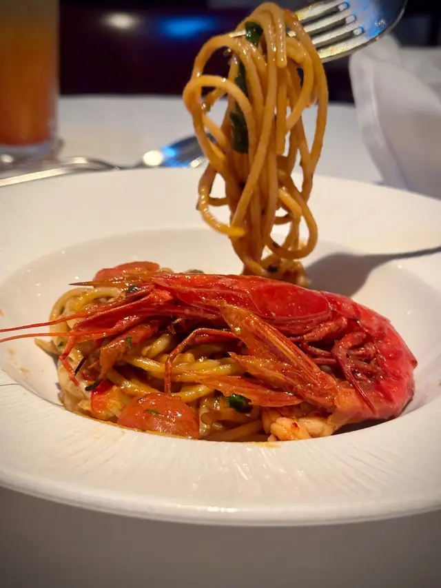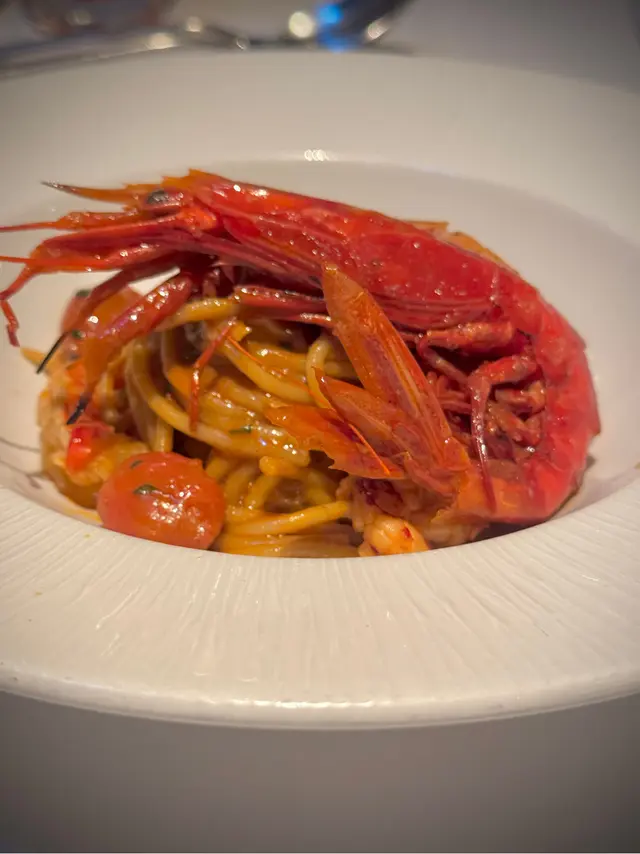 自家製意大利幼麵帶有嚼勁,口感較紮實,紅蝦新鮮鮮甜,加入番茄、香草及柑橘,整體甜酸醒胃