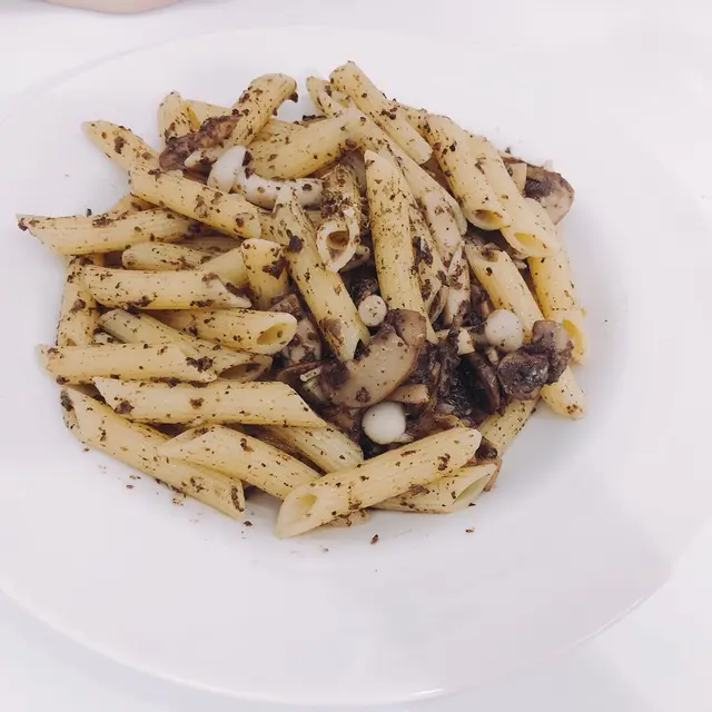 朋友點了黑松露醬配雜菌長通粉,好有黑松露香味,但不是太入味,加點水會好點,多少少黑松露汁就perfect ❗❗😋😋菇好多,足料👍🏻