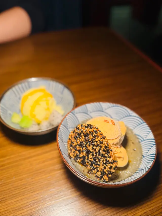 • 🍮 黑芝麻法式燉蛋 : 面頭嘅焦糖燒得夠脆 ✨,燉蛋充滿濃郁嘅黑芝麻香😋,配埋上面嘅雪糕🍦同爆谷脆脆口感好豐富。