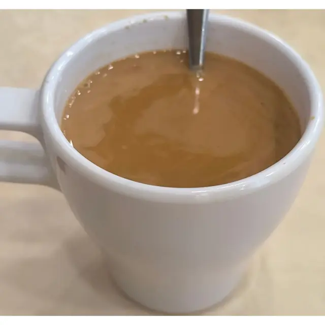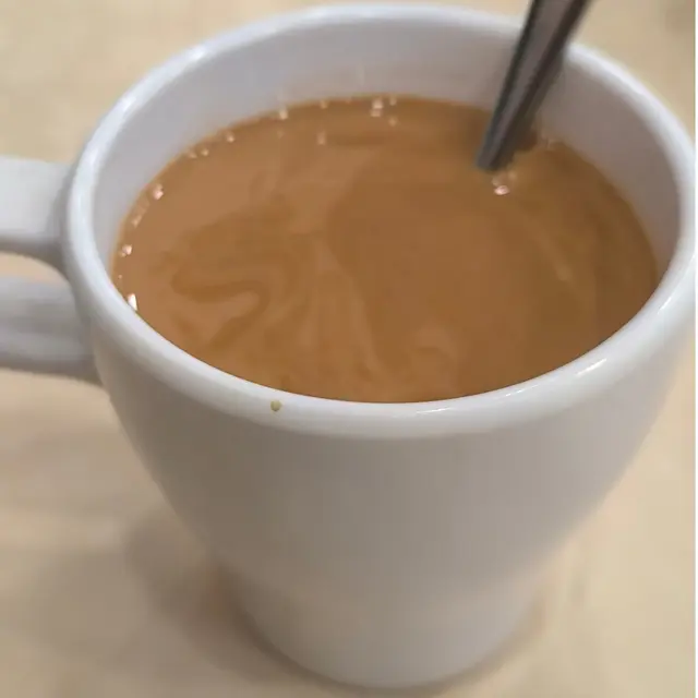 呢個係下午茶餐,我揀咗任選5款餸粉麵,真係唔洗煩,唔洗睇呢個餸加幾錢,果個餸又加幾錢,一律統一就最好,最後揀咗腩肉、紫菜、牛肉丸、黃金魚片頭同豬肚,麵揀咗幼麵,腩肉有成3舊、3粒好結實牛肉丸、3舊黃金魚片頭、3舊洗得好乾淨嘅豬肚同無沙嘅紫菜,熱飲係跟埋,揀咗熱鴛鴦!