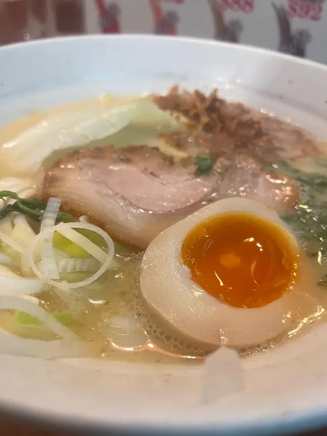 小編本身好中意濃厚嘅雞湯拉麵🍜甘見到佢自稱「終極」,甘就當然要試試佢啦!大概等左5分鐘左右就有得食喇😍賣相方面,湯頭顏色奶白🥛見到佢仲帶左啲雞油的淡黃色同埋有啲雞油🐓浮左喺湯面~入口雞味都算濃嘅🐓但個湯本身比較稀😌所以就差左啲雞湯嘅濃稠濃同埋膠質~但佢個味道係ok嘅!不過食完吾知點解好口渴🥵可能落左味精(?) 材料方面有半隻糖心蛋🥚、生菜、青蔥、葱、炸洋葱末同一片叉燒。一開始見到有塊生菜🥬覺得好奇怪🤨同埋$98蚊嘅拉麵叉燒都係得一片☹️值得慶幸嘅係隻糖心蛋做得好好~半熟流心得黎味道亦都好夠!塊日式叉燒都做得吾錯😚做到肥瘦相間,豬肉嘅脂肪夾雜在瘦肉之間🐷🐷🐷肉質都幾嫩滑!不過可惜得一塊🥹🥹🥹麵條方面,小編嗌左硬身嘅面條~面質算彈牙爽口,硬度方面啱啱好!係小編中意嘅面質🥰🥰🥰另外佢個面亦都算掛湯~所以overall黎講算係做得幾好😚(除左塊生嘅生菜之外🤯