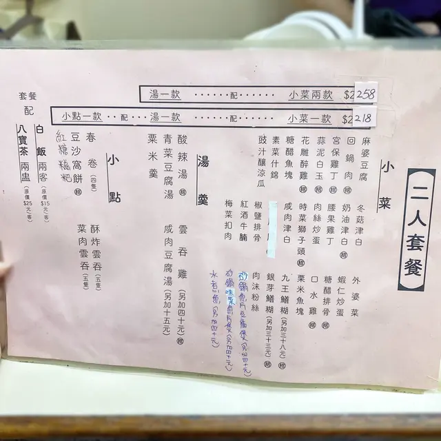二人套餐 - 兩款小菜和一個湯($258) 包兩個白飯 & 八寶茶