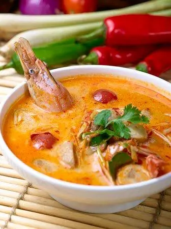 泰式冬陰公海鮮湯,辣度同酸度都非常恰當適中,個人好怕坊間有啲泰國餐廳,一係非常酸,一係非常辣,只係飲到湯底內單一味道,失去本身酸辣味,今次食到啲蝦仲可以keep到佢嘅海鮮味,仲配搭左好多草菇係湯底耐添。