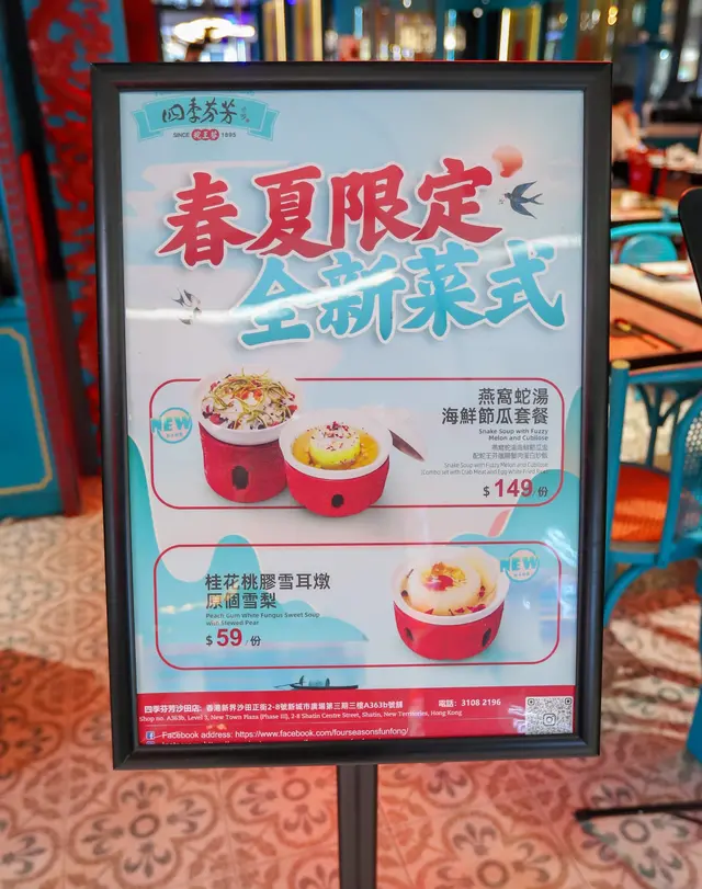 「四季芬芳」是其年輕線,主打新潮粵菜、點心及輕食等類型,而裝修方面卻是別緻中帶點宮廷色彩。