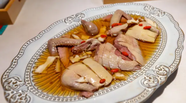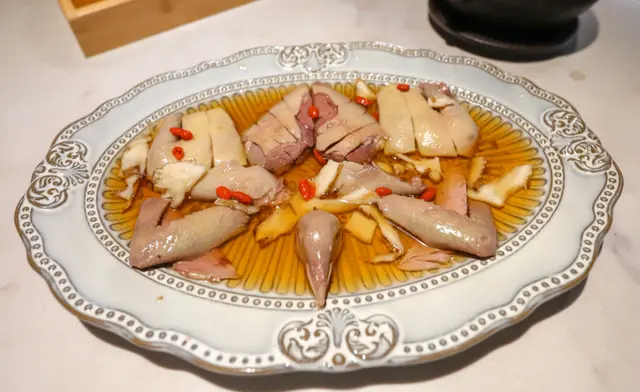 之後再加多碟「藥膳醉鴿」,乳鴿在當歸、杞子和花雕酒中浸浴了一整晚,難怪肉質如斯鮮嫩柔滑、帶醉人酒香,另廚功也要一讚,每件鴿肉的大細剛好,成功將完貌重塑。