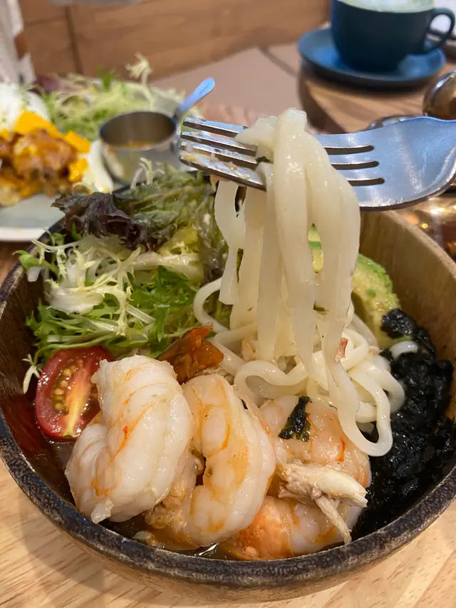 烏稻庭冬軟硬適中,配料有鮮味的蟹肉、爽口彈牙的大蝦、健康的牛油果同沙律菜,再按自己喜好倒入用小湯壺裝著的龍蝦湯,味道比想像中清爽,帶有海鮮的鮮味,是早午餐零負擔的不錯選擇。