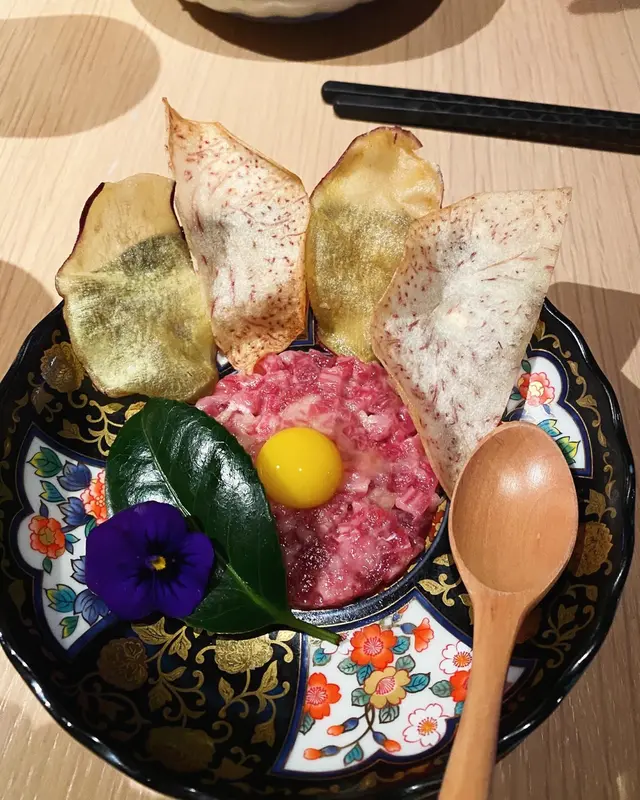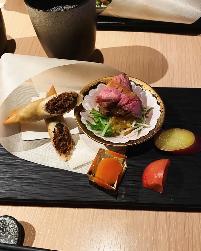 主角A5和牛壽喜燒真係無得彈!牛肉片厚身又嫩滑,沾上蛋液同壽喜燒醬汁,入口即溶,肉汁同蛋香一齊爆發,簡直係天堂嘅享受!配菜有豆腐、菇類同芋絲,吸晒醬汁精華,每啖都好有層次。不過有啲遺憾係佢哋唔係席前煮,而係喺開放式廚房整,雖然店員好細心會睇住你嘅進食速度再煮下一塊,但少咗啲即席烹調嘅互動感。