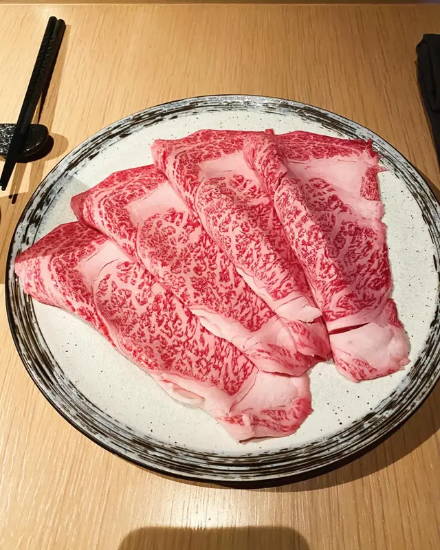 一入座,店員好親切咁介紹菜單,仲拎咗A5和牛片俾我哋影相,嗰啲和牛真係靚到不得了,油花分佈均勻,似大理石咁精緻!佢哋主打嘅壽喜燒用東京本店空運過嚟嘅秘製醬汁,味道甜甜鹹鹹好開胃。壽喜燒套餐(我哋試咗$988嘅松套餐)有前菜、刺身、主菜同甜品,內容豐富到不得了。開頭嘅前菜有和牛筋凍煮,口感爽脆,仲有啲和牛清湯啫喱,淡淡肉香好特別。刺身拼盤超新鮮,入口即化,特別係拖羅,油香濃到令人回味。