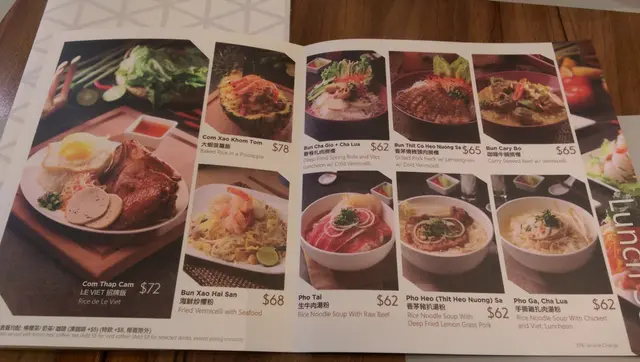 我地一行四人叫左大蝦菠蘿飯、生牛肉湯粉、香茅豬頸肉撈檬、春卷扎肉撈檬~