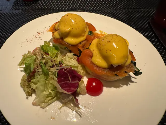 班尼廸蛋配煙三文魚味道真不錯,那荷蘭醬汁非常香滑,味道調到剛剛好,酸甜到拿捏得10分準確,口感香滑,十分開胃。加上那菠菜和煙三文魚,拌以水波蛋嘅蛋汁,簡單而美味,滿足。