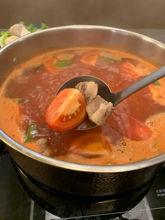 有機蕃茄薯仔鮮牛窩:湯底有大量新鮮有機蕃茄薯仔,酸酸的非常開胃飽肚,鮮牛腩肉奶香味濃。