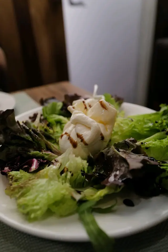 我哋叫咗一份 Burrata & Salad 作為前菜。Burrata 係一種意大利嘅軟芝士,內裡質地綿滑,外面又少少煙韌、味道香濃。配搭上新鮮嘅沙律菜,清新可口。