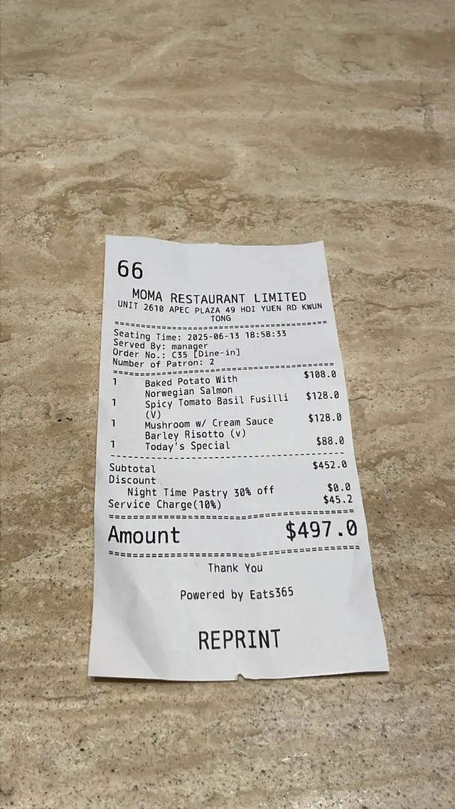 整體而言,MOMA 成功融合了北歐的生活美學與高品質餐飲。它不僅提供令人印象深刻的手工意粉與創意菜式,更打造了一個讓人在中環心臟地帶得以喘息、享受美食與美好時光的舒適空間。無論是獨自前來「嘆啡」、品嚐煙燻三文魚鬆餅或帕馬火腿三明治,還是與三五知己分享一桌美味,MOMA 都是中環上班族和追求品味生活人士的優質之選。