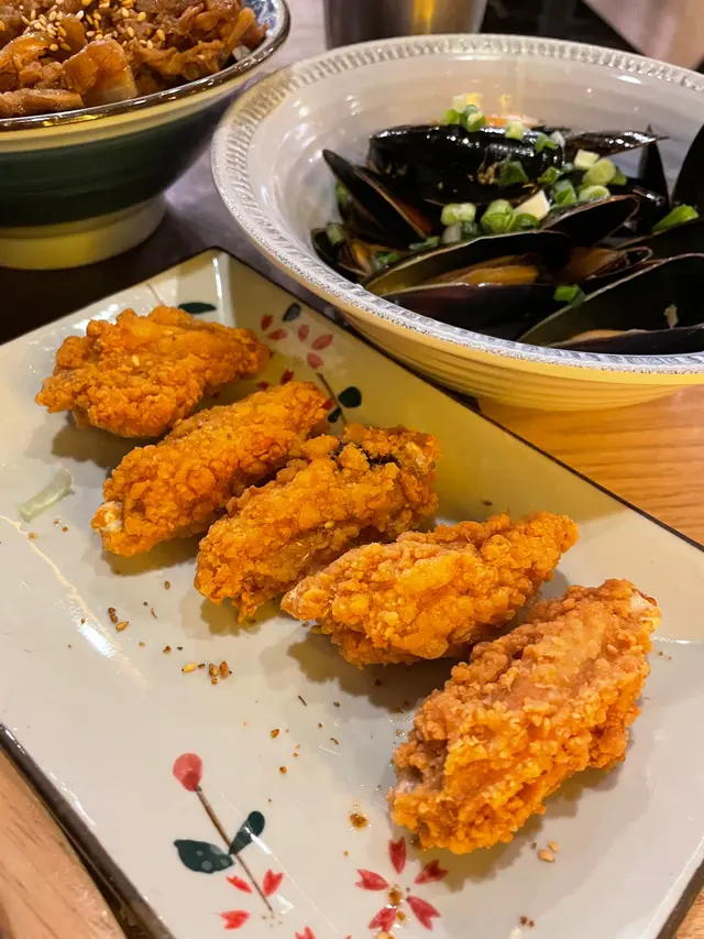 🍢 青口 & 單骨雞翼(5件):小食都唔輸蝕!青口肉質飽滿,好鮮甜;而單骨雞翼真係懶人恩物,炸得香脆又juicy,一嘢啜晒啲肉,超爽!🍗