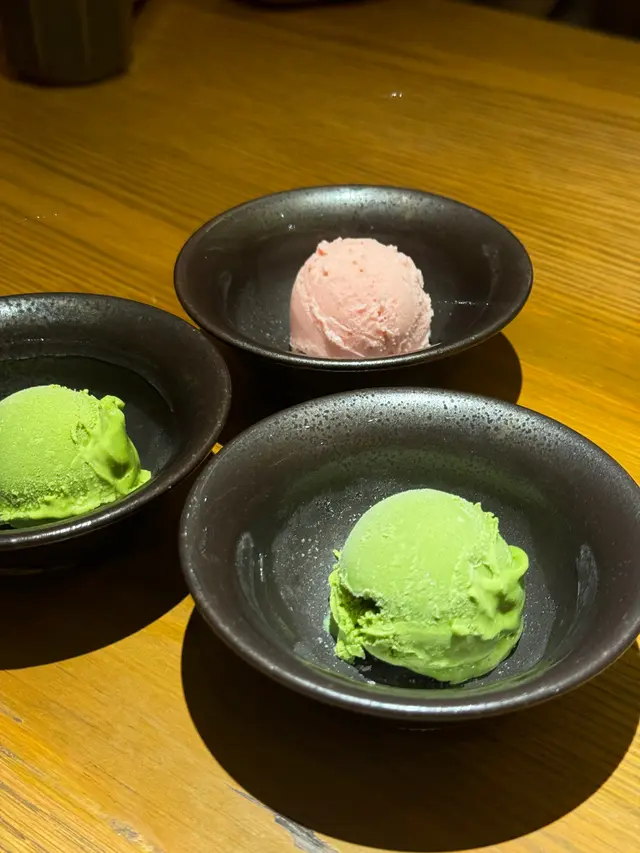 沙律係麻醬菠菜,清新爽口。味噌湯就有啲中藥味怪怪地🤣最後仲有雪糕作結,好豐富,可以揀抹茶或士多啤梨味,抹茶味勁香濃醇厚😋