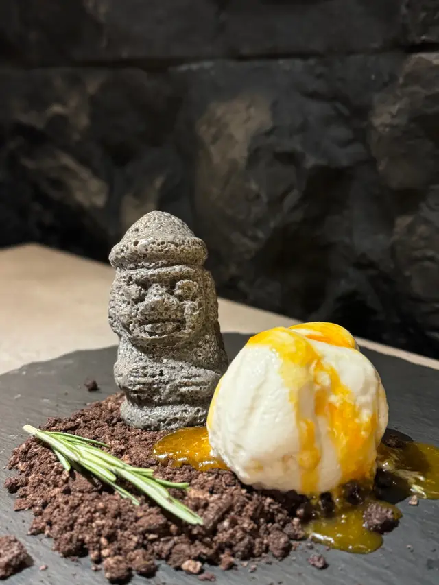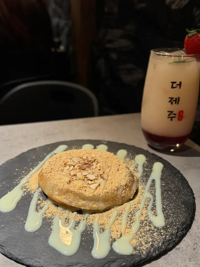 濟州爺爺係黑芝麻雪糕,造型好可愛;烤糯米糕外脆內軟,灑滿黃豆粉,口感煙韌!