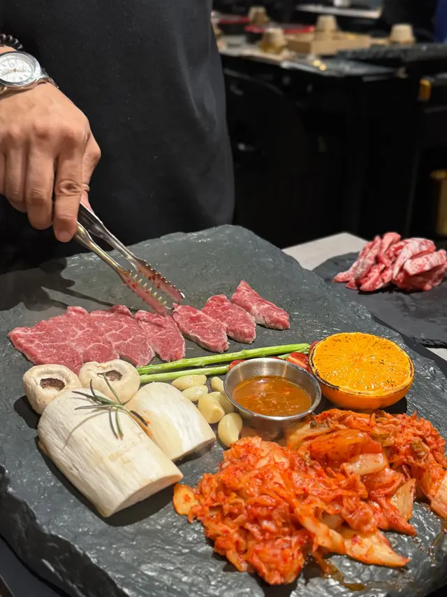 餐廳用特製火山岩石板做韓燒,全程有店員幫手燒,唔使自己動手,可以慢慢傾偈等食!!!