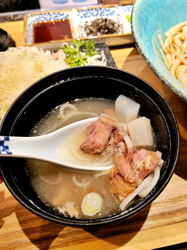 調味方面餐廳附上特製牛汁、紫菜碎和薑蔥