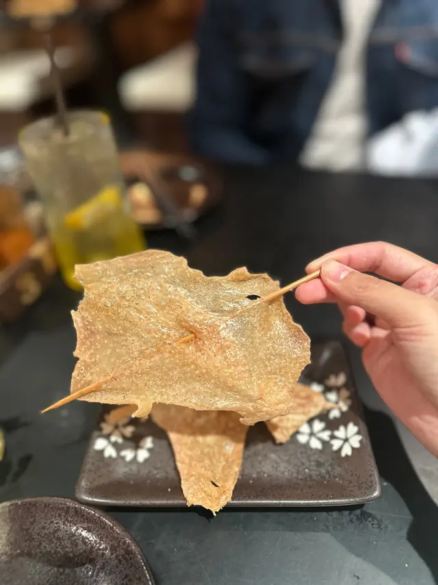 成塊雞皮脆卜卜!好似食薯片咁真係好過癮同我哋喺日本食嘅雞皮完全唔同呀!各有特色配啤酒一流啊👍🏻😋