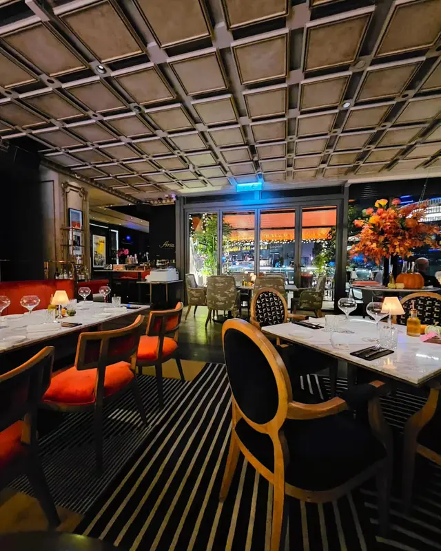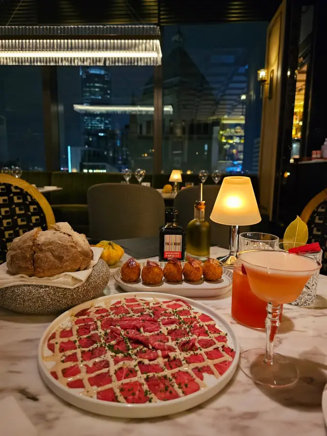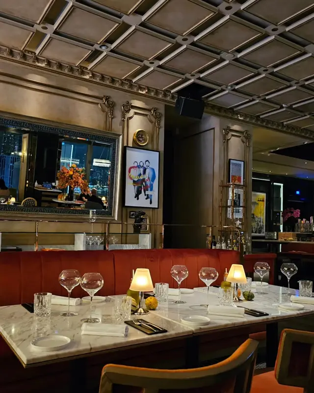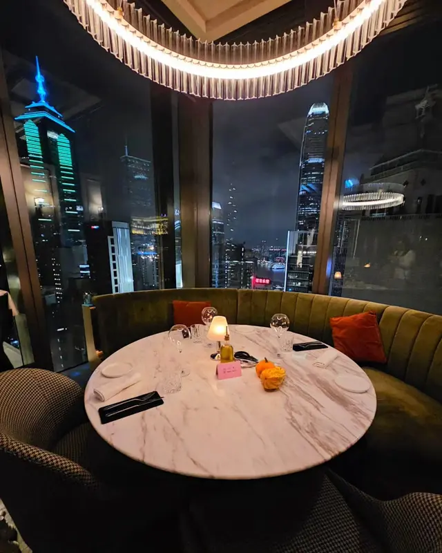 餐廳位於大廈的24樓,一出𨋢就見到一個置頂的玻璃酒櫃,極具氣派,室內以歐洲凡爾賽宮廷式的設計,天花板更以大理石浮雕做裝飾,華麗雅致,梳化,餐枱椅等也是那種歐式古典的風格,貴氣又舒適;落地玻璃嘅設計更加可以安座在室內的座位上面,觀看中環的夜景;視野開揚;餐廳更設有室外的Padio位置,景觀更加遼闊,坐在外面,就有種被周圍大廈五光十色的燈光包圍著般,夜景超級迷人,美景盡入眼簾,還能遠眺維多利亞港的景色,點返個靚酒坐喺出面,真係超級寫意呀~
