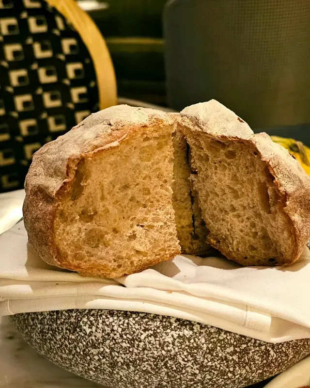 點餐之後,侍應便會端上一個自家製的制的酸種麵包~sour dough bun, 麵團的發酵和烤焗時間非常恰到好處,麵包質感猶如海綿般的鬆軟而有彈性,入口軟綿得來,又有口感,配以傳統的意大利黑醋和橄欖油來食,甘香又開胃