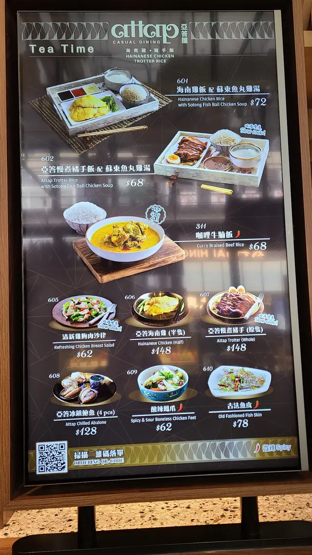 亞答慢煮豬手茶餐份量都好多肉食,已經切到細細件好易食。豬手塊皮超彈牙,脂肪唔算多,肉質我都覺得好嫩,而且味道入味,好正!配有一細兜酸辣汁,點黎食更惹味!豬手伴有糖心蛋半隻同鹹菜。
